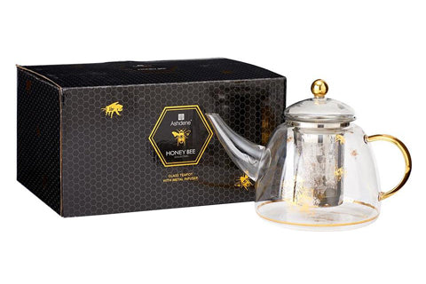 Enjoy your favourite blends of tea in our delicate clear glass teaware collection. Featuring a sophisticated gold honey bee design, alongside double walled heat resistant borosilicate glass to keep your drink hotter for longer. The Honey Bee Collection has been especially designed for those who simply adore their tea.